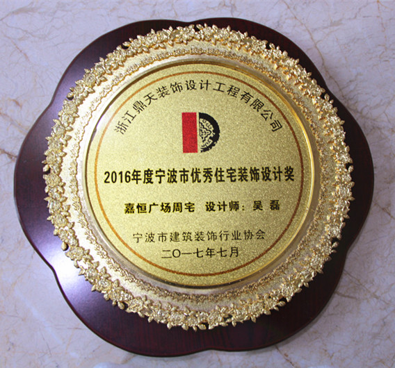 2017年8月 榮獲2016年寧波優(yōu)秀住宅裝飾設(shè)計(jì)獎(jiǎng)