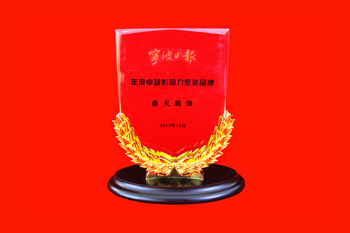 2017年度 鼎天榮獲“年度卓越影響力家裝品牌“榮譽(yù)稱號