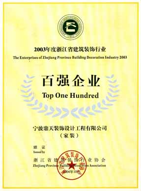 | 2004年10月 獲浙江省建筑裝飾行業(yè)百強(qiáng)企業(yè) |