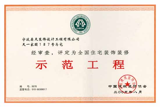 | 2005年08月 評為全國住宅裝飾裝修示范工程(二項(xiàng)) |