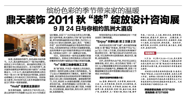 | 鼎天裝飾2011秋“裝”綻放設(shè)計(jì)咨詢展 |