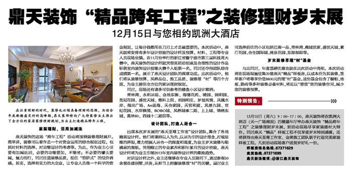 | 鼎天裝飾“精品跨年工程”周六舉辦 |