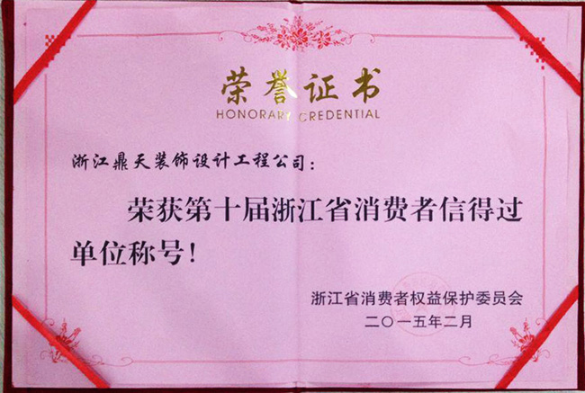 | 鼎天裝飾榮獲“省消費者信得過單位”稱號 |