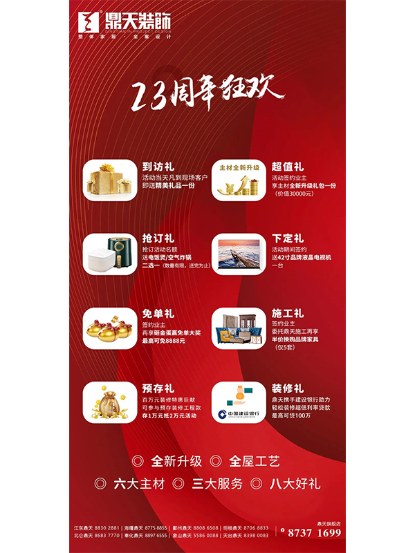 近期有裝修計(jì)劃的你,可以掃描下方二維碼,讓我們專業(yè)設(shè)計(jì)師和施工團(tuán)隊(duì)為你打造“理想之家?!蓖低蹈嬖V你,美艷1號精裝套餐最劃算哦!活動(dòng)當(dāng)天,前300名簽到客戶,即可免費(fèi)領(lǐng)取潔麗雅高檔毛巾禮盒一套,現(xiàn)場還有多重豪禮等你來拿!掃描下方二維碼,與鼎天在線溝通 ↓↓↓