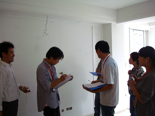 鼎天裝飾施工技能大賽房活動(dòng)已全面展開(kāi),八月底推出這個(gè)活動(dòng)時(shí),征集的30套“比武大賽”樣板房很快就預(yù)定一空,目前已經(jīng)有十幾家開(kāi)工進(jìn)場(chǎng)了。9月27日,鼎天各部門(mén)主管一行專(zhuān)門(mén)來(lái)到上上城、風(fēng)格城事、南都花城等工地,針對(duì)本次施工技能大賽房進(jìn)行了工地巡檢。其中,選擇“美艷1號(hào)” 999元/㎡精裝套餐的業(yè)主工地也在重點(diǎn)巡檢的行列中。工地形象、施工工藝、業(yè)主反饋等信息,都將成為鼎天選評(píng)“2010金牌項(xiàng)目經(jīng)理、金牌施工班組”的重要打分依據(jù)。