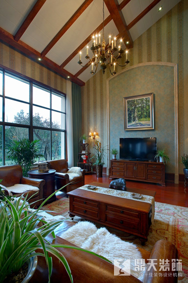 洋房,本是中國人對具有歐美風(fēng)格的別墅的總稱,但在我們的印象中,卻常常呈現(xiàn)老上海十里洋場的花園洋房畫面,那種沉淀歲月,不改風(fēng)情的氣質(zhì)和氛圍。這套作品,雖然沒有傳統(tǒng)印象中的青磚配圓拱的表象,但內(nèi)涵的氣度氛圍,卻承襲了花園洋房一貫的中西交融。木色深深,蘭花碧翠,書香墨韻,銅燈金粉……所謂中西合璧,氣韻相通便是這樣。更何況該屋舍建筑本身便是一套歐美風(fēng)格的別墅,而室內(nèi)設(shè)計中除了藝術(shù)花燈、壁紙、皮制沙發(fā)、美式家具的使用外,還采用了大量的中式裝飾元素,例如書畫和內(nèi)蘊中國傳統(tǒng)審美的綠色植物,這使得整個空間更貼近業(yè)主的精神世界,洋房的文化價值和室內(nèi)設(shè)計的使用需求由此實現(xiàn)。